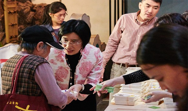 圖1: 康科特董事長劉靜怡女士於義診活動親手贈送熱食給民眾