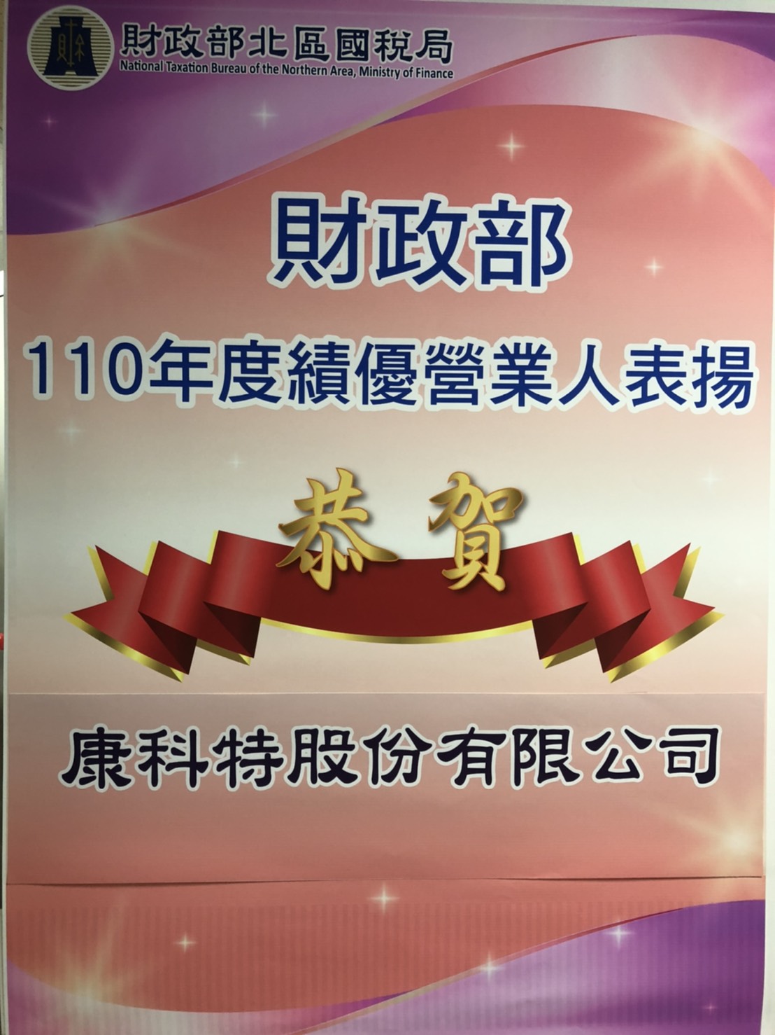 狂賀: 康科特獲頒財政部110年度績優營業人表揚
